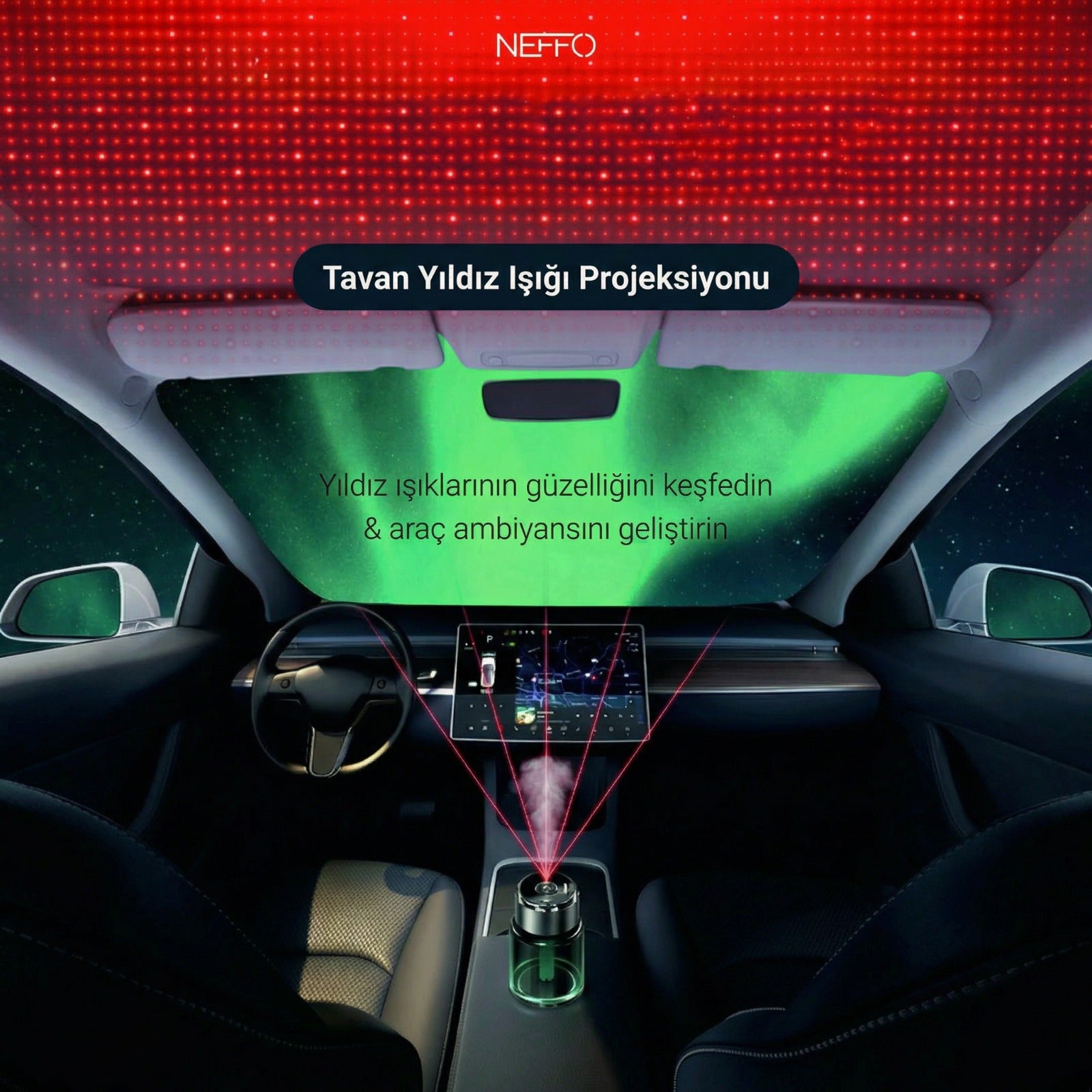 Araç İçi Otomatik Koku Makinesi – 160ML, Lazer Tavan Işığı, 300mAh